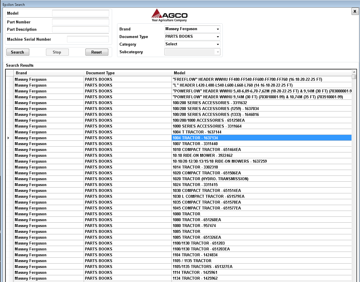 Massey Ferguson Europe UK Epsilon [02.2021] Part Books & Workshop Service Manuals is a catalog of parts and service manuals for all models of Massey Ferguson turf care equipment in the United Kingdom and Europe. It is an electronic application that contains a spare parts catalog for agricultural machinery such as tractors, harvesters, balers, among others. It provides technical information and parts diagrams to assist in the identification and search for necessary spare parts. It also includes service manuals to aid in the maintenance and repair of the equipment. This program is useful for both current and future owners of Massey Ferguson equipment, as it covers a wide range of models and parts.
