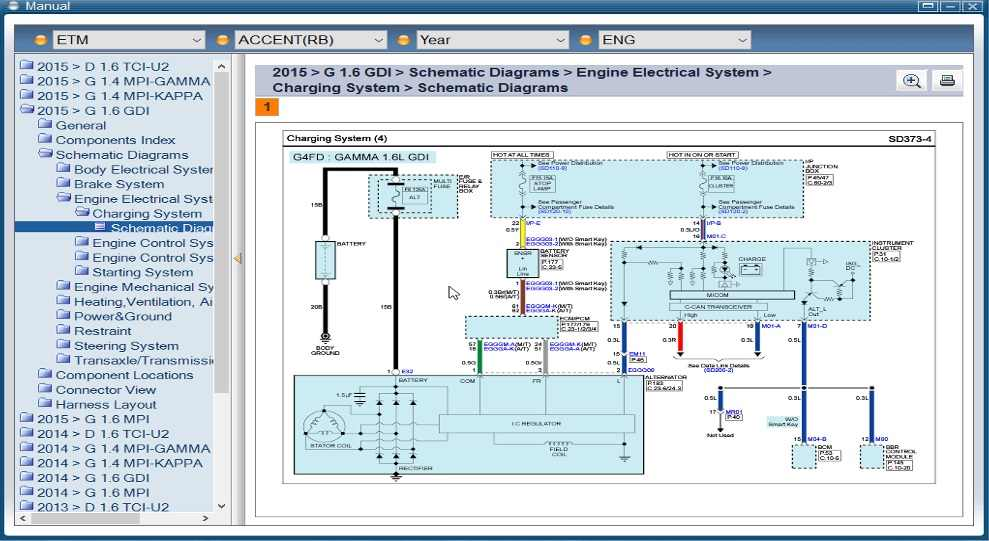 This section contains the electrical diagrams of Hyundai vehicles. For example, if we select the diagram for the brake system, the program will automatically access the 3 pages of the corresponding electrical diagram for the brake system. It is important to note that it includes the option to print the document.