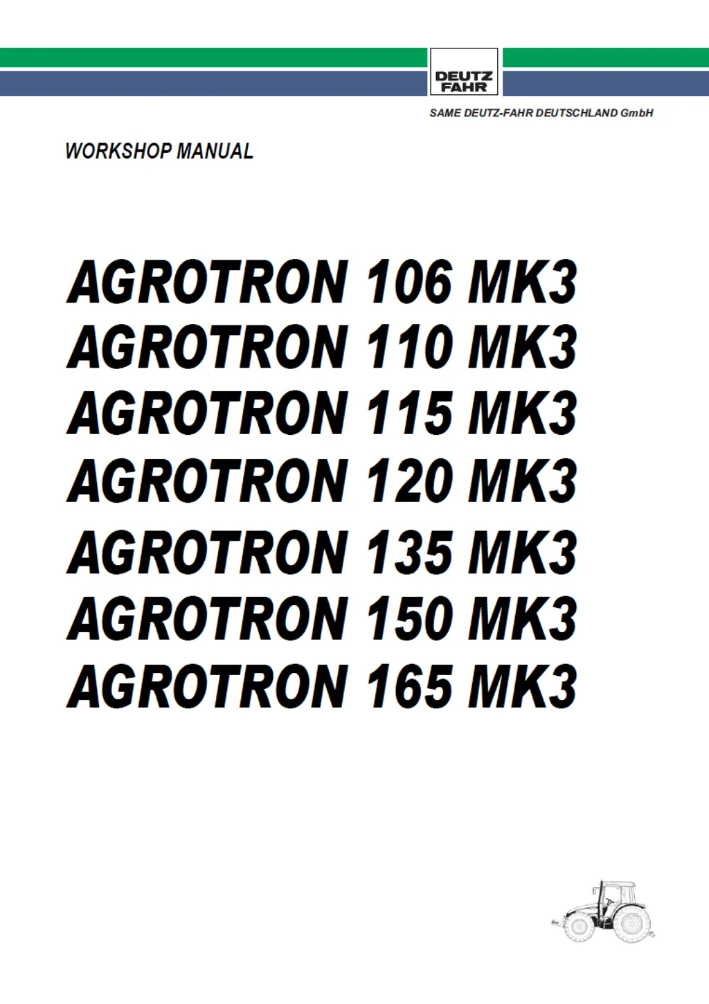 The workshop manuals, operation and maintenance manuals, and standard workshop times for Deutz-Fahr tractors are available. These technical documents provide a comprehensive guide for servicing and maintaining Deutz-Fahr tractors, offering detailed instructions and extensive information on operating and maintenance procedures, as well as standard timeframes for workshop tasks. These manuals serve as essential tools for owners, technicians, and operators of Deutz-Fahr equipment, ensuring proper functioning and effective maintenance of the machinery.