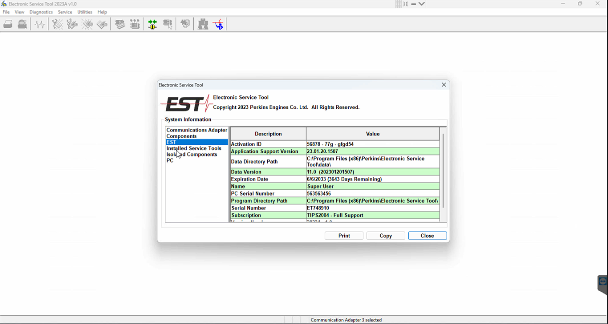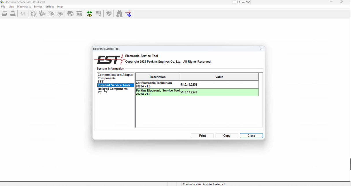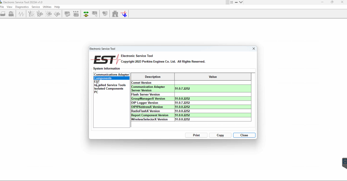 What is Perkins EST? Perkins EST 2023A is a diagnostic software used in the automotive industry, specifically for diagnosing and maintaining diesel engines manufactured by Perkins Engines Company Limited. This comprehensive tool is primarily used in repair workshops and authorized Perkins dealerships. It enables technicians to perform detailed diagnostics of Perkins diesel engines and generators. Through a communication data link, the software establishes communication with the electronic control modules (ECMs), allowing for the diagnosis of existing and potential problems, configuration of products, and retrieval of data for analysis. What advanced diagnostic capabilities does the Electronic Service Tool of Perkins EST 2023A offer for engine maintenance and repair? The Electronic Service Tool provides a range of features and functionalities that aid in engine maintenance and repair. It allows technicians to perform advanced diagnostics, including real-time parameter readings, performance testing, and fault code detection. This comprehensive diagnostic capability ensures accurate troubleshooting and problem identification. Additionally, the software enables technicians to make adjustments and configurations to engine parameters, tailoring them to suit different applications or specific requirements. This flexibility allows for optimized engine performance in various operating conditions. To ensure the engines are up to date and performing at their best, Perkins EST 2023A offers the capability to update the engine's software with the latest available versions. These software updates not only enhance performance but also improve overall engine efficiency. Furthermore, the software facilitates data logging, allowing technicians to analyze and monitor engine performance over time. This valuable feature aids in identifying issues, making necessary adjustments, and maintaining optimal engine performance. In summary, Perkins EST 2023A is a powerful diagnostic software that enables technicians to diagnose, maintain, and optimize Perkins diesel engines and generators. It provides advanced diagnostics, adjustment capabilities, software updates, and data logging functionality, making it an essential tool for automotive professionals in repair workshops and authorized Perkins dealerships.