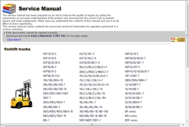 Hyundai Forklift Service Manuals / Operation Manuals 2020