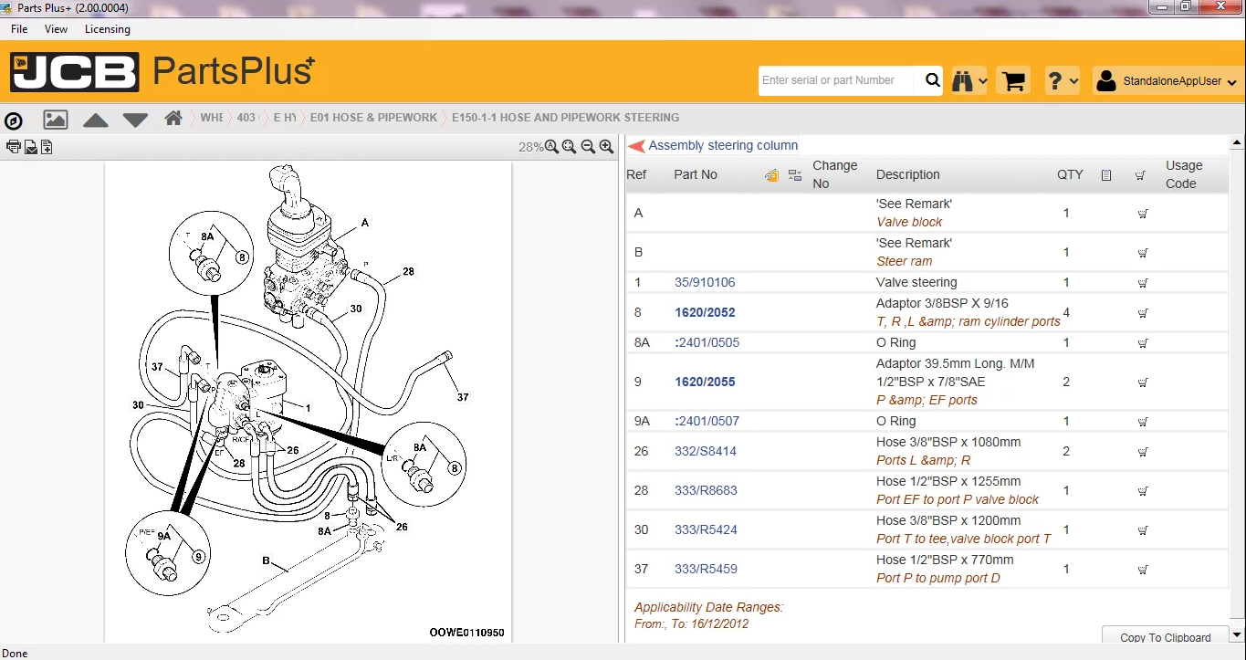 In summary, it is a comprehensive and reliable software that provides support for spare parts search and performing repairs on JCB equipment. Its extensive catalog, detailed diagrams, and search functions facilitate the location of components and the efficient execution of maintenance and repair tasks.
