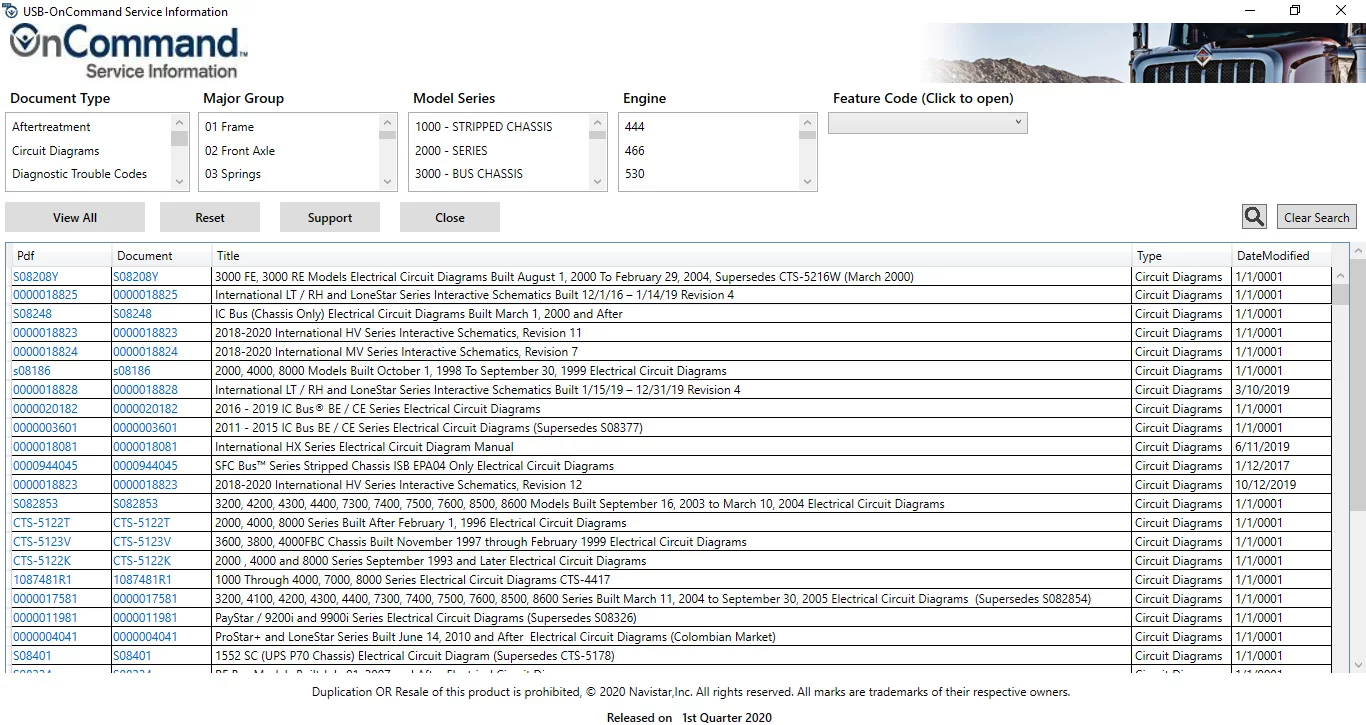 Navistar OnCommand 2020 is a diagnostic and repair software equipped with service manuals and wiring diagrams for Navistar International vehicles. This program provides detailed information on maintenance, repairs, service manuals, electrical circuit diagrams, troubleshooting guides for the electrical system, and much more for all models of Navistar International trucks and engines. The OnCommand 2020 software is designed to provide comprehensive support to repair technicians and owners of Navistar International vehicles.